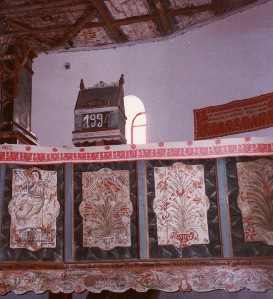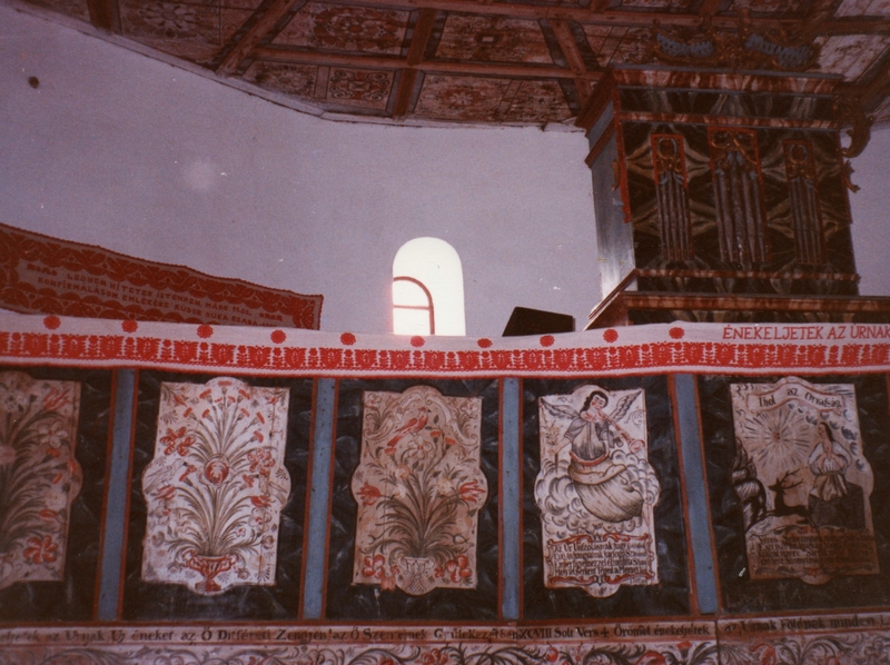 Lőrinc János 1790-es és ifj. Umling Lőrinc 1794-ben festett kazettáival díszített orgonakarzat Magyarbikalon
